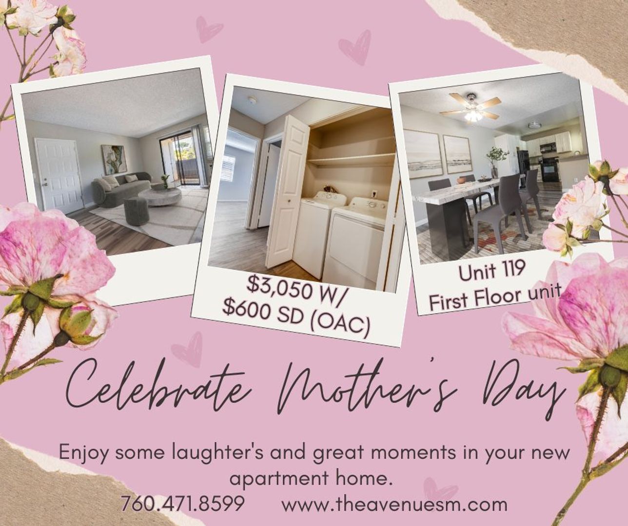 Celebrate Mothers day in your new home ! Lower Prices! from $3,050 to $2795, LEAE THIS UNIT TODAY!